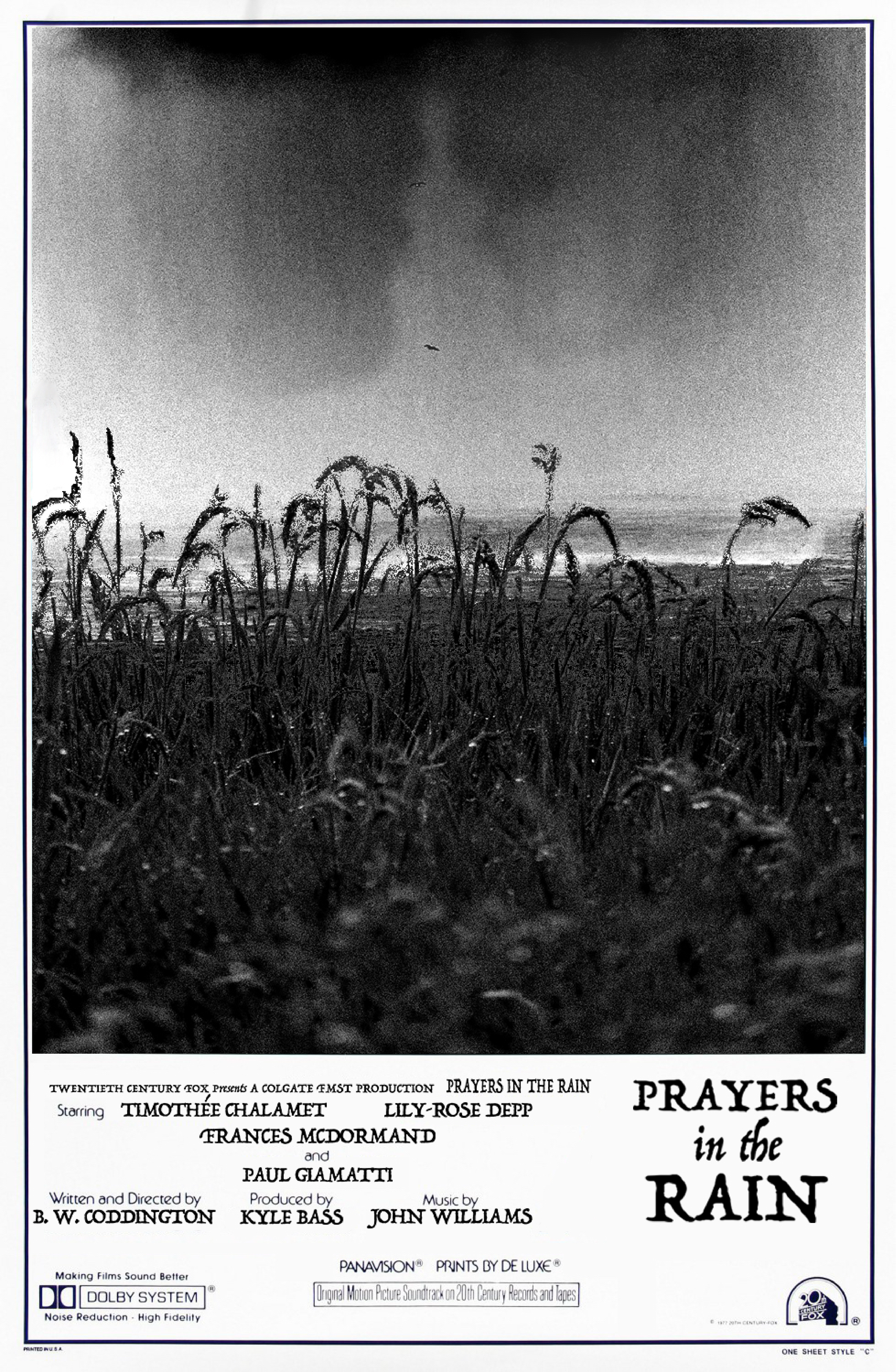 A poster for a conceptual film titled Prayers in the Rain.